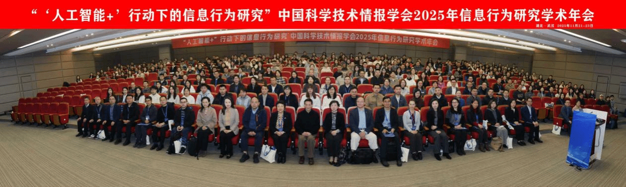2025年11月21-23日,中国科学技术情报学会2025年信息行为研究学术年会在中国武汉成功召开,本次会议的主题为“人工智能+”行动下的信息行为研究。主办单位:中国科学技术情报学会信息行为研究专业委员会;承办单位:华中师范大学信息管理学院。现场参会人数400+。大会由武汉大学人文社科资深教授马费成、中国科学技术情报学会副理事长兼秘书长潘云涛、中国科学技术情报学会信息行为研究专业委员会主任李月琳、华中师范大学副校长吴丹等主持。