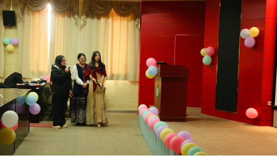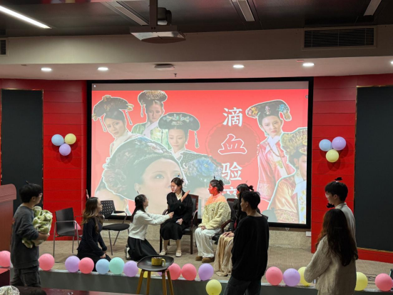 联欢会后段,王文清、刘欣瑶、赵晓霞、顾全泉、周懿楠、张啸晨、李希彤等九位同学带来的小品《甄嬛传·滴血验亲》笑点密集、演技在线,巧妙的构思与生动的表演让观众忍俊不禁;刘晨希与孔文博合唱的《带我去找夜生活》活力满满,点燃全场热情;任文星独唱的《小烦恼没什么大不了》旋律轻快,传递出积极乐观的生活态度;王骞与欧张帆演唱的《大东北我的家乡》极具地域特色,豪迈的歌声展现出别样风情。
