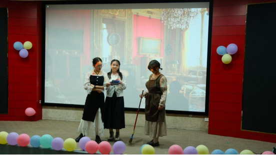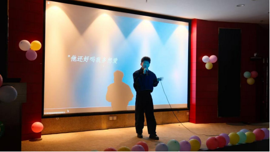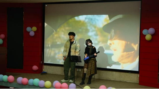 中场时段,张芦宇、李希彤、娄芬戈三人合作的配音串烧堪称精彩绝伦。她们将多个经典影视片段串联改编,让同学们深感其受。徐思缘与赵婉黎携手演唱的《我怀念的》温情脉脉,勾起了大家对青春岁月的美好回忆;刘明锦、任文星、张啸晨合唱的《十年》则旋律动人,道尽时光流转中的感悟与坚守。