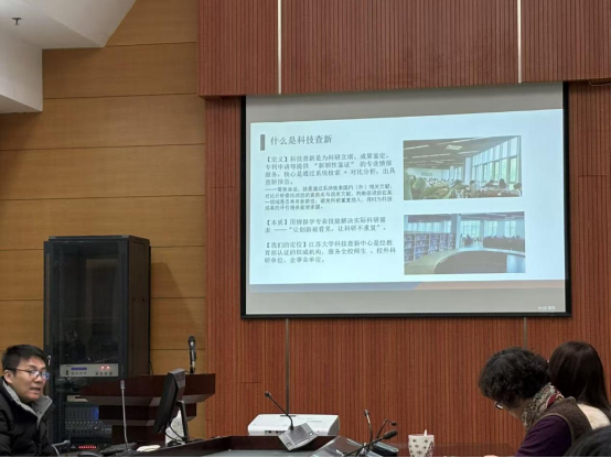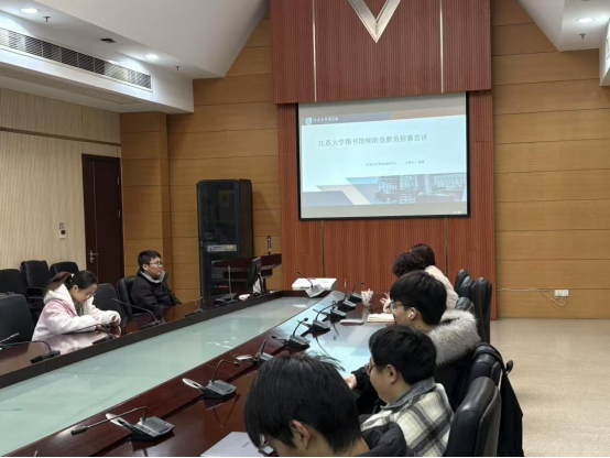 2026年1月8日,江苏大学科技信息研究所举办“2026年科技信息研究所科技查新介绍会”。图书馆党委副书记、副馆长刘竟,科技信息研究所副所长王婧怡、江苏大学图书馆科技查新中心博士包翔及科信所2024级、2025级全体研究生参加了此次宣讲会。