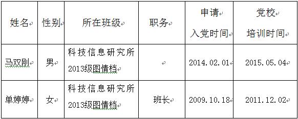 经党支部考察和研究,并经图书馆党总支预审,拟于近期召开党员大会,讨论接收马双刚、单婷婷同志为中共预备党员问题,现将马双刚、单婷婷同志基本情况公示如下,敬请党员、群众监督,如有意见和建议,请于11月 25日前向所在党支部、党总支或党委组织部反映。